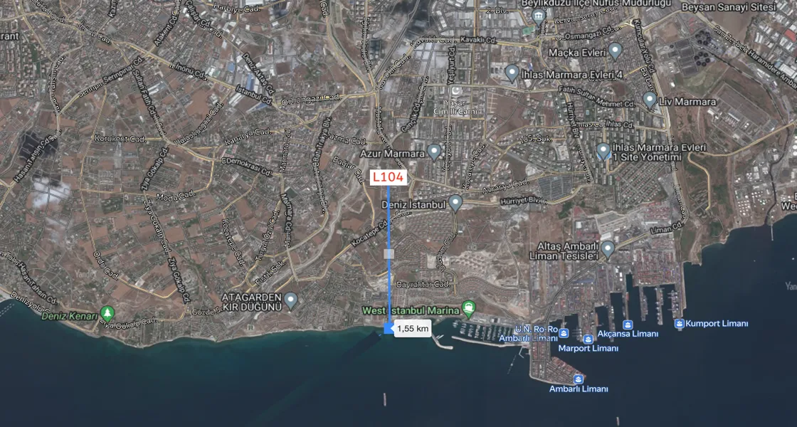 - تبعد عن ساحل بحر مرمرة مسافة 1.55 كيلومتر