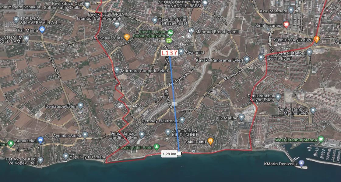 - تبعد عن ساحل بحر مرمرة مسافة 1.25 كيلومتر