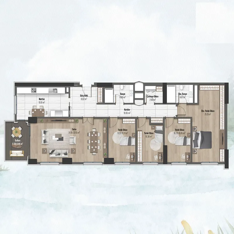 تم بناء المشروع على ارض تبلغ مساحتها 50000 متر مربع منها 38000 متر مربع مخصصة للمساحات الخضراء ، وهو مكون من 5 أبنية أو كتل سكنية بأرتفاع 14 طابق ، يقدم هذا المشروع السكني لمستثمريه ومشتري المنازل 413 شقة سكنية معروضة للبيع ، تتوفر شقق بانماط شقق تبدأ من 1+1 ولغاية 4+1 بمساحات تبدأ من 75 ولغاية 217 متر مربع .