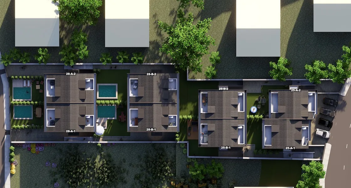 تم بناء المشروع على أرض تبلغ مساحتها 1500 متر مربع , ويتكون المشروع من 8 فلل سكنية بارتفاع 3 طوابق وبانماط فلل 4+1 وبمساحات تبدأ من 220 ولغاية 260 متر مربع ، تم تصميم الفلل من خلال مراعاة نوعية الأسرة وللعائلات الكبيرة ، تحتوي كل فيلا على نظام المنزل الذكي ، حديقة خاصة ومسبح خارجي خاص وموقف للسيارات ،كما ان المشروع مخدوم بحراسة وامن ومراقبة كاميرات على مدار 24/7