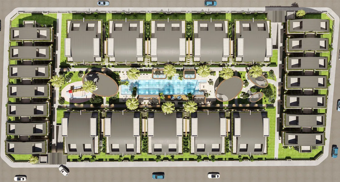 يقع المشروع في مدينة انطاليا وتحديداً دوشمالتي ، تم بناءه على ارض تبلغ مساحتها 8539 متر مربع ، وهو مكون من 34 فيلا سكنية بارتفاع 3 طوابق لكل فيلا وبنمط 4+1 وبمساحات تبدأ من 296 ولغاية 434 متر مربع .