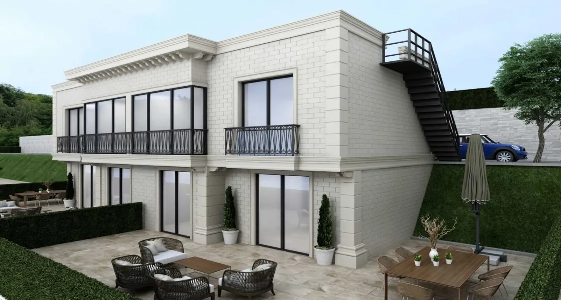 - كما تم وضع سلالم مؤدية إلى السطح على جانبي الفيلات كي يتمتع المستخدمون بفرصة مشاهدة إطلالة صبنجة الفريدة من مناطق أعلى ارتفاعا