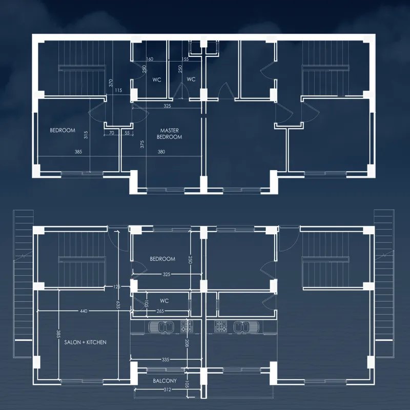 - جميع الفلل نفس المساحة مع الحديقة المساحة الإجمالية 226 متر مربع ، والصافية 157 متر مربع ونفس الأنماط ب 3 + 1 دوبلكس مطبخ مفتوح.