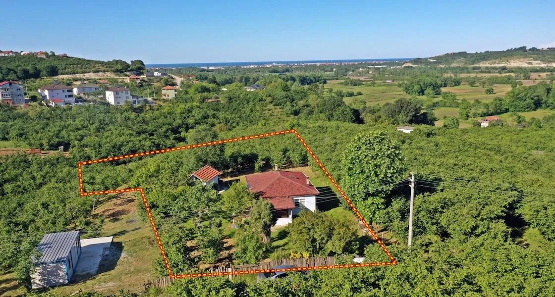 Agricultural land for sale in Sakarya, specifically in Karasu, with an area of 3,727 square meters. The land includes a rural house and is very close to the Black Sea, situated in a green and fertile area.