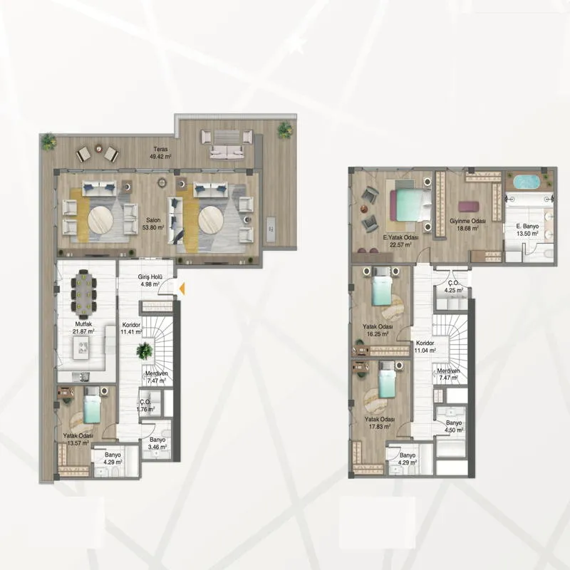 The project was built on a land area of 13,000 square meters and it consists of 2 buildings or residential blocks with a height of 34 floors, so that the total number of apartments in this project is 343 apartments offered for sale in Istanbul, it provides options of apartments starting from 1+ 1 to 5 + 1, with areas ranging from 74 to 492 square meters, in which there are options for duplex apartments for sale.