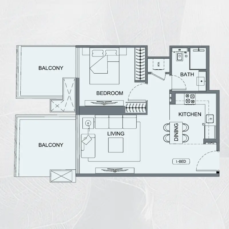 The project consists of a single residential building with a height of 25 floors, containing 282 apartments for sale in Dubai. Apartment options range from studios (1+0) to two-bedroom apartments with a living room (2+1), with sizes ranging from 336 sq ft (31 sq m) to 1329 sq ft (124 sq m).