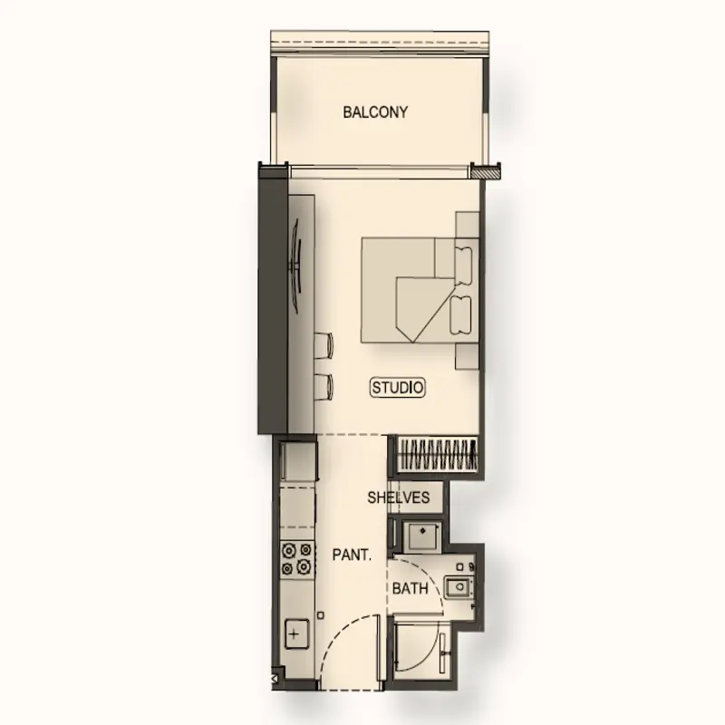 • Studio Apartments for sale 1+0 with sizes ranging from 359 sq ft (33 m²) to 416 sq ft (39 m²) to meet the needs of young professionals.