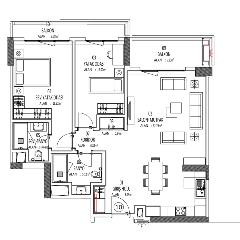 The project is built on a land area of 103,000 square meters, with 85% allocated to green spaces. It consists of 16 buildings or residential blocks of 10 floors. The project includes 950 residential apartments with property styles ranging from 1+1 to 4+1, duplexes and penthouses are available in the project , with sizes starting from 158 up to 398 square meters. Within the project, there are 48 commercial shops to meet the residents' needs. It offers residents a stunning view of the sunset and a comfortable, tranquil environment. There are various apartment options and sizes available to suit everyone, with everything you need for your comfort in this housing project in Istanbul.