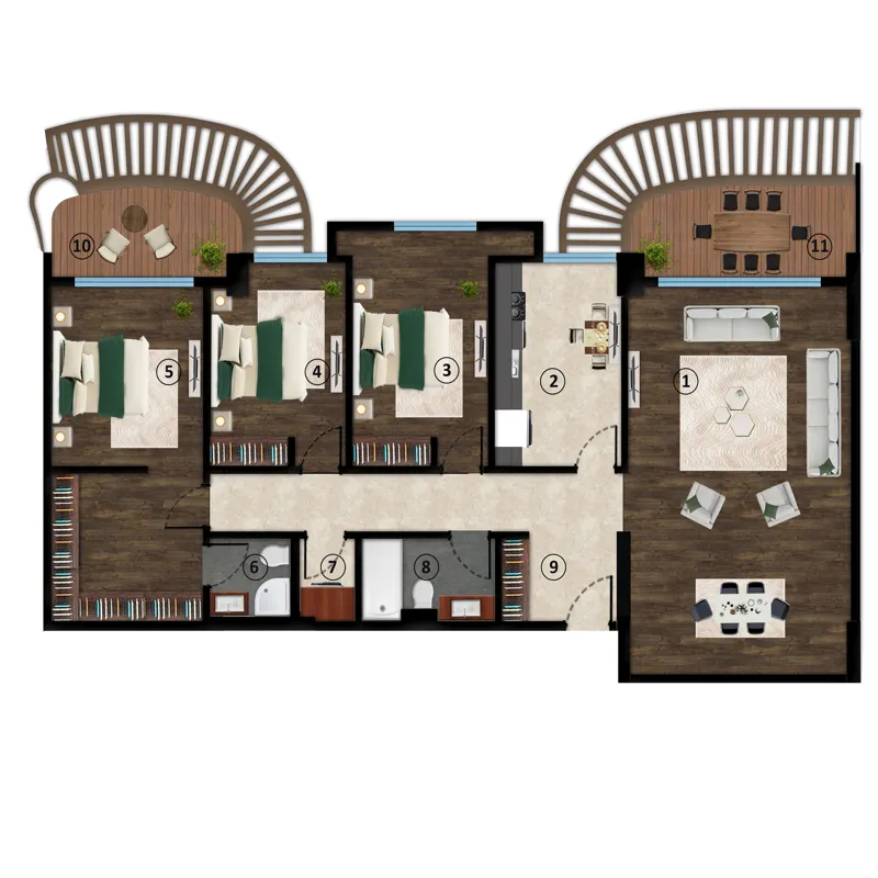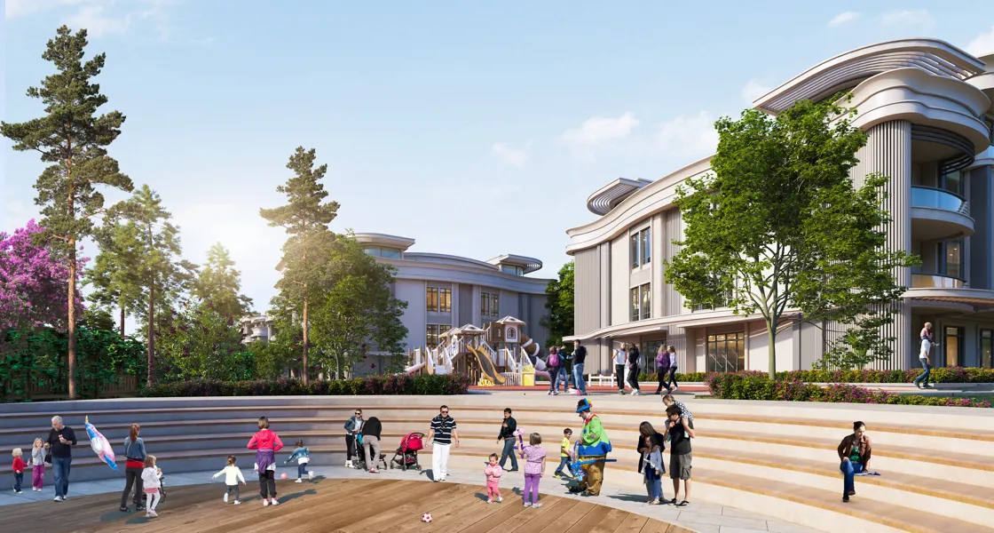 The project is located in the state of Kocaeli, specifically Izmit Kartepe. The project was built on a land of 30,000 square meters and it consists of 15 blocks or residential buildings with a height of 4 floors, so that the number of residential properties in it is 309 apartments offered for sale in Izmit, in which there are options starting from 1 + 1 up to 4 + 1, with areas ranging from 84 to 231 square meters, there are different styles and multiple formations of ground and terrace duplex apartments.