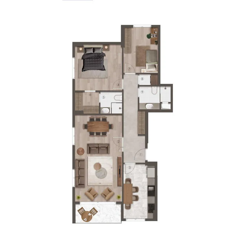 The total area of the project is 6500 square meters, and it consists of 6 buildings or residential blocks with a height of 4 floors, and it includes 60 apartments or real estate offered for sale in Istanbul, in which there are currently apartments starting from 2 + 1 to 4 + 1 with areas ranging from 94 to 189 Square meters . The project offers comfortable and spacious interior designs in the apartments that were created by combining high-quality and aesthetic materials. The project invites you to live your dreams with its modern architecture and spacious spaces for your comfort.