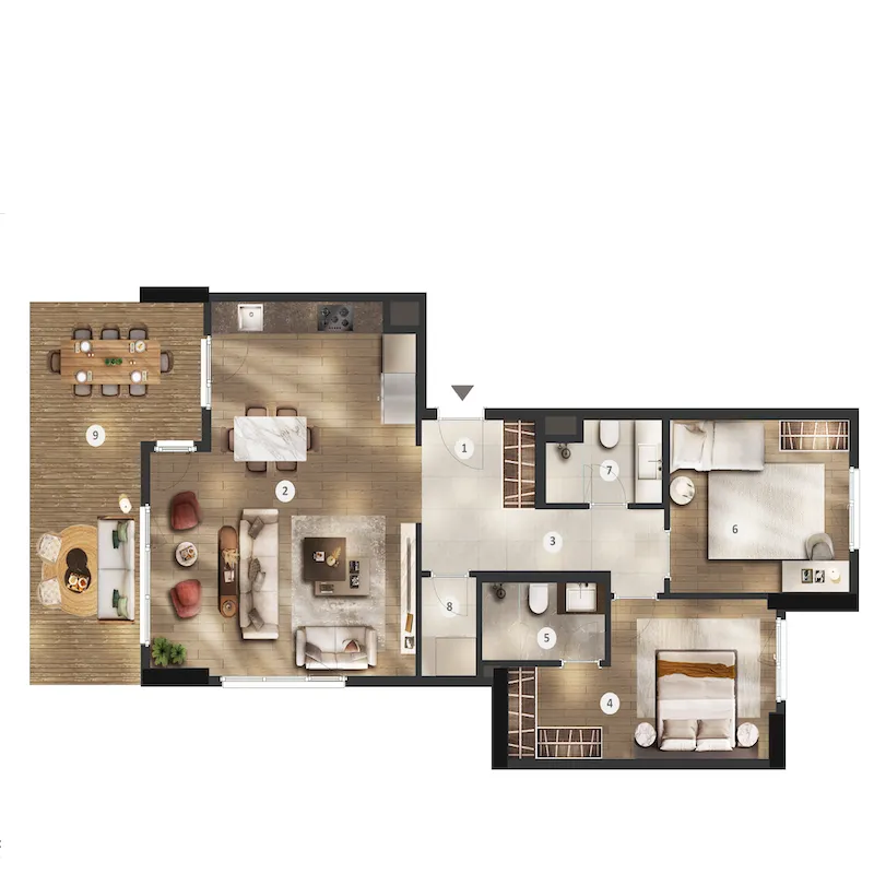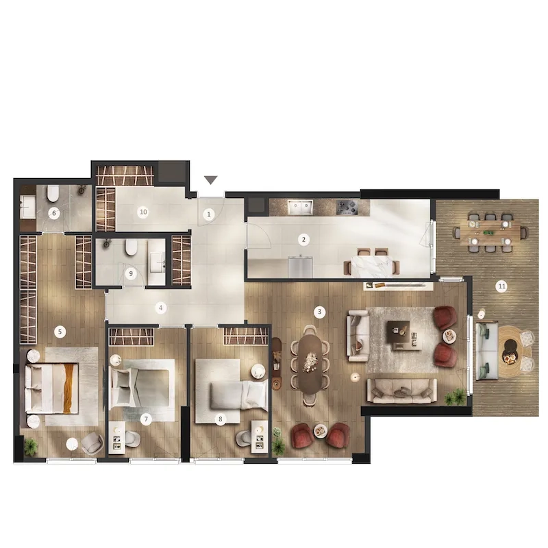 The project was built on a land area of 161,727 square meters, and it consists of 44 buildings or residential blocks with a height of 6 floors. The project offers investors a total number of residential units of 686 residential properties with multiple options starting from 2+1 up to 4+1 and with areas starting from 103. Up to 145 square meters, there are multiple options available, from apartments with a garden and terrace to separate villa options. The project also contains 23 commercial units to meet the needs of residents.