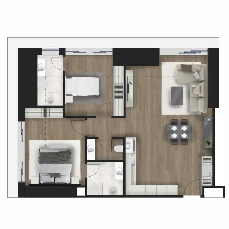 - Private Balconies: Enjoy the fresh air and stunning views from your private balcony.