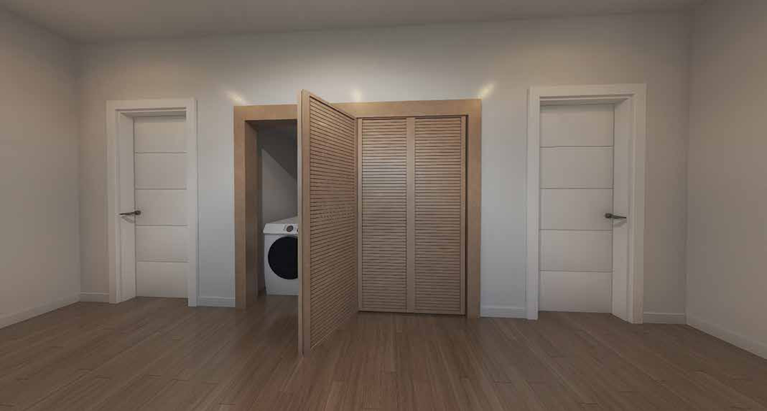 - Design: Two bedrooms and a living room on three floors.