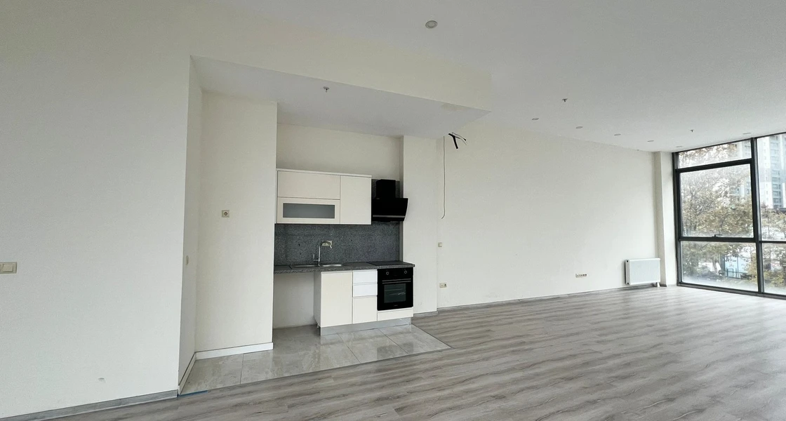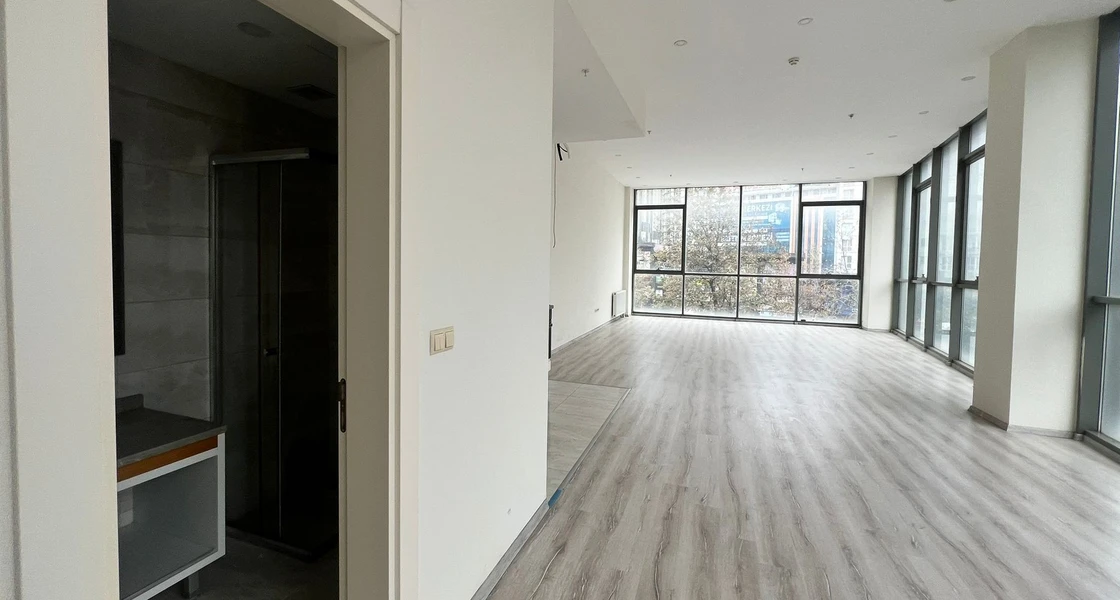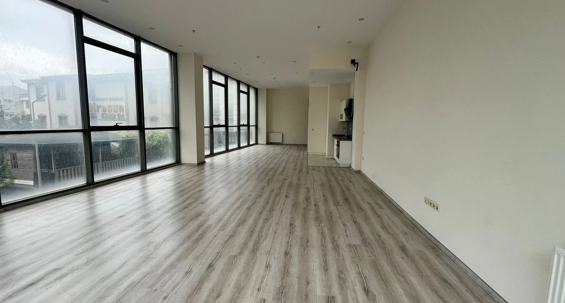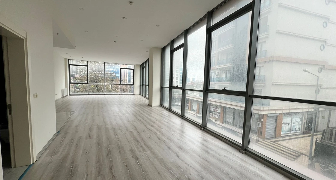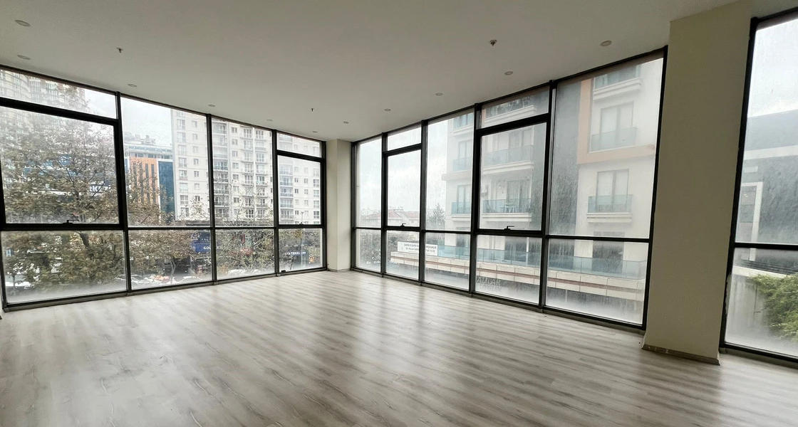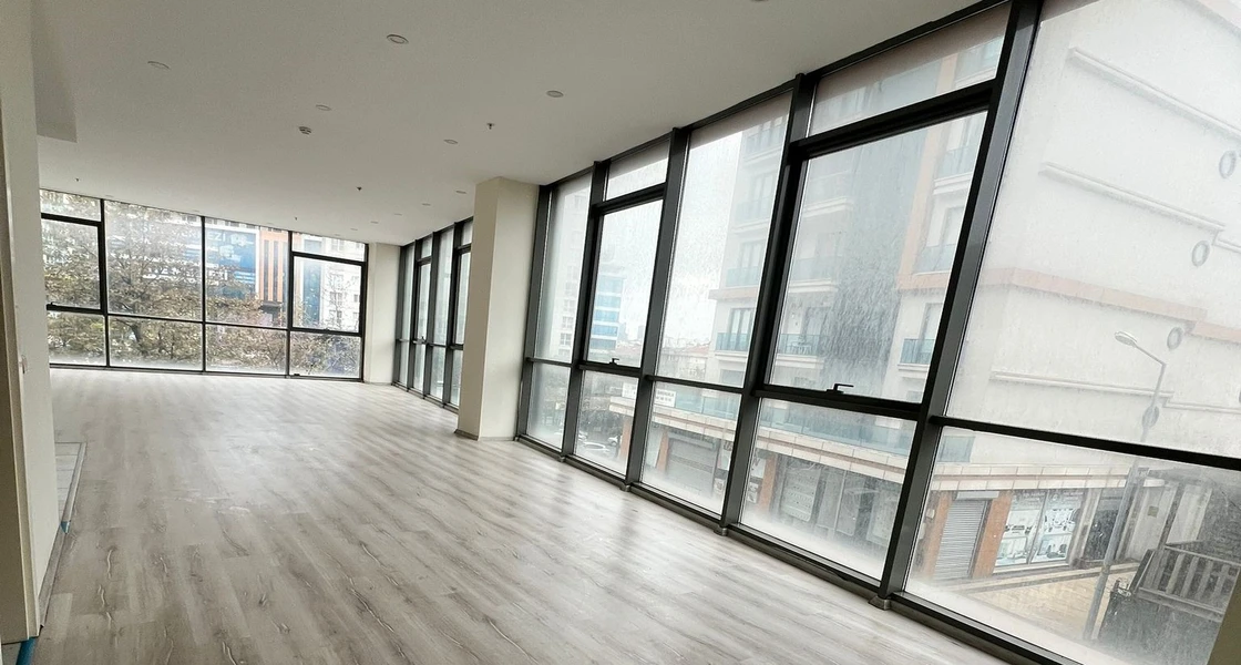 A commercial office for sale in the Esenyurt area complexes, specifically in Yeşil Kent, Istanbul. The office is located in the "Önay Life Residence" complex. The total area of the office is 93 square meters, located on the ground floor. The office is vacant and ready for delivery or immediate investment.