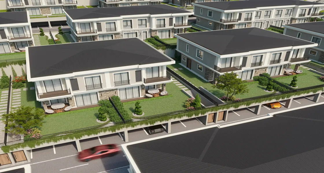 Проект вилл отличается своими социальными и культурными возможностями. Дорожки для бега и прогулок, включенные в жилую зону, позволяют по-другому ощутить себя на природе с видом на озеро. На игровой площадке дети смогут весело провести время и пообщаться друг с другом. Отдельные сады придадут индивидуальность времени, которое вы проводите с семьей. Более того, ваш сад, который вы можете использовать для обедов, развлечений и отдыха, подарит вам уникальные впечатления. Открытый бассейн в общей жилой зоне дает возможность общаться в комфорте собственного дома. Проект, привлекающий внимание своей малоэтажной горизонтальной архитектурой, удачно выделяется среди вариантов стамбульских вилл на продажу.