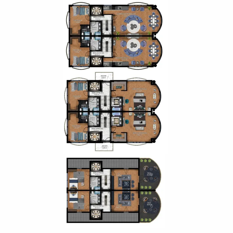 Каждая вилла содержит сауну, турецкую баню, джакузи и частный бассейн, а также 2 парковки. Проект предлагает вам виллы с системой "умный дом", где вы сможете управлять всей виллой по телефону. На территории проекта доступны все услуги, отвечающие потребностям жителей, в том числе: