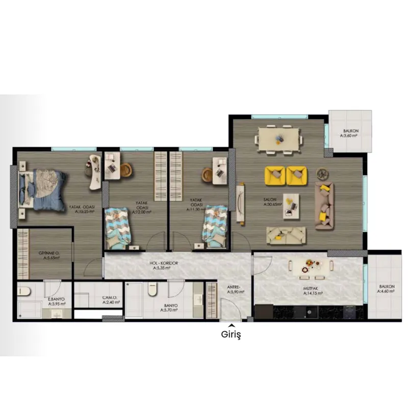 Проект построен на участке площадью 3300 квадратных метров, из которых 1100 квадратных метров отведено под зеленые насаждения с уникальным дизайном, проект состоит всего из одного здания высотой 13 этажей, так что общее количество квартир в нем составляет 78 объектов жилой недвижимости, в которых на данный момент есть варианты квартир начиная от 2+1 до 3+1, площадью от 107 до 150 квадратных метров.