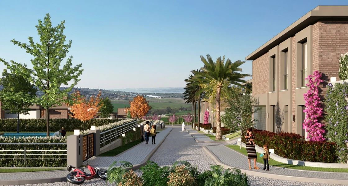 Проект расположен всего в одной минуте от шоссе TEM и недалеко от пляжа, который находится всего в 5 минутах езды. До аэропорта Стамбула можно добраться за 35 минут. Рынки, больницы, школы и университеты находятся всего в 5-15 минутах езды.