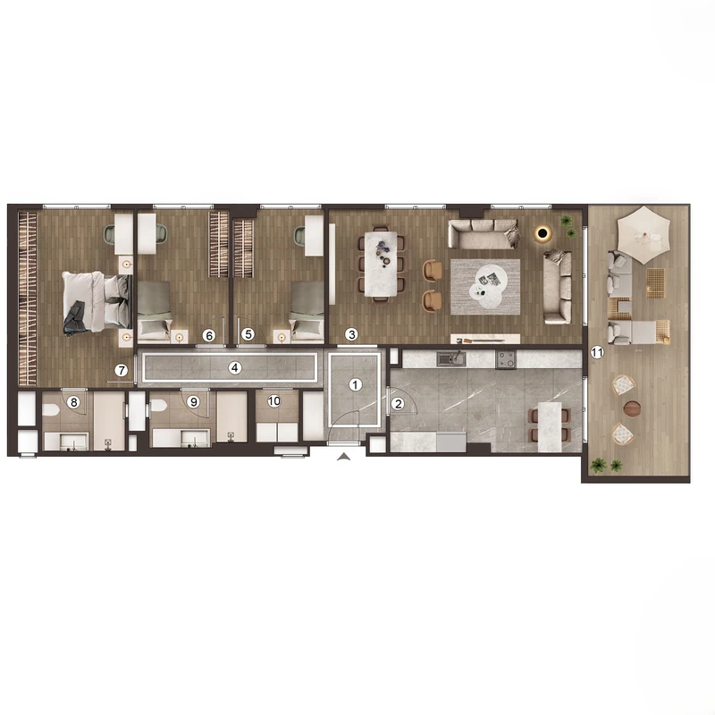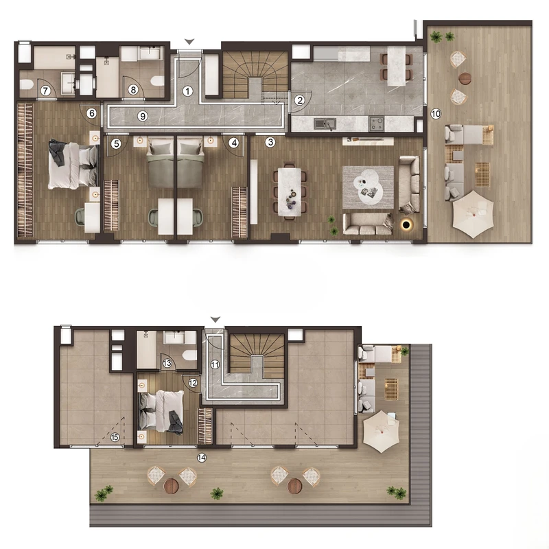 Проект построен на участке площадью 90 000 квадратных метров и состоит из 223 квартир, расположенных в 6 жилых блоках по 5 этажей в каждом. Предлагаются варианты квартир от 1+1 до 4+1 площадью от 84 до 266 квадратных метров. Проект также предлагает дуплексы на продажу в Стамбуле.