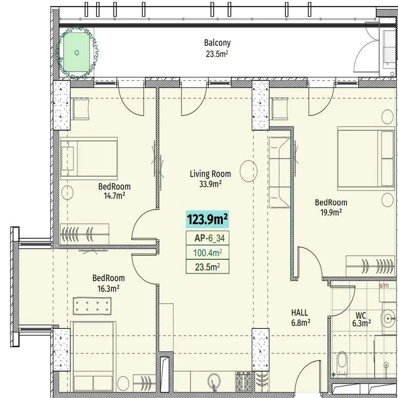 3 | 1 | 123 - 125 m² | 235,410 - 238,450 usd |