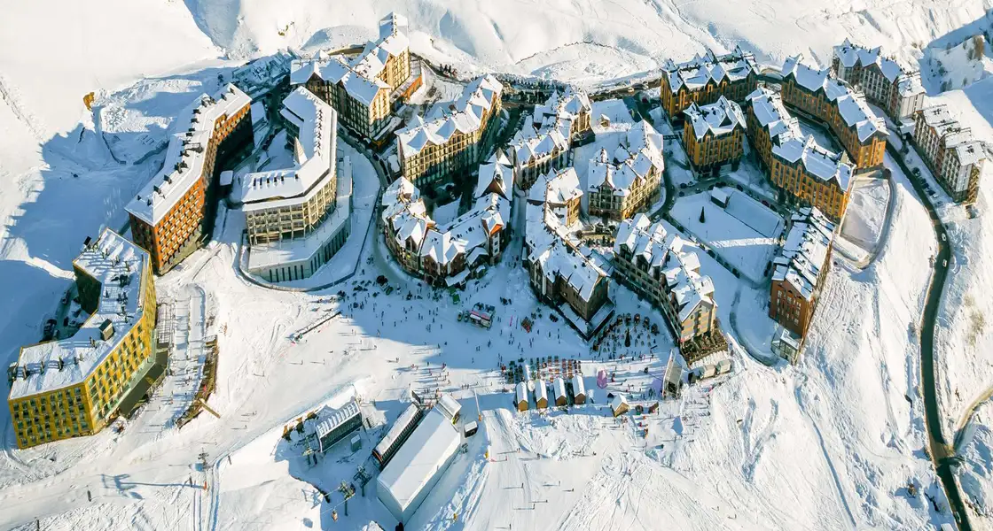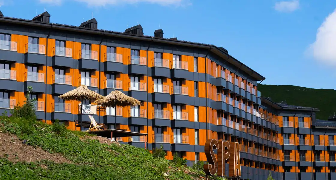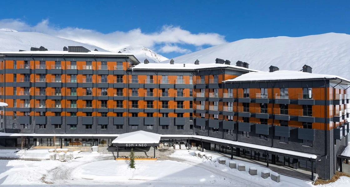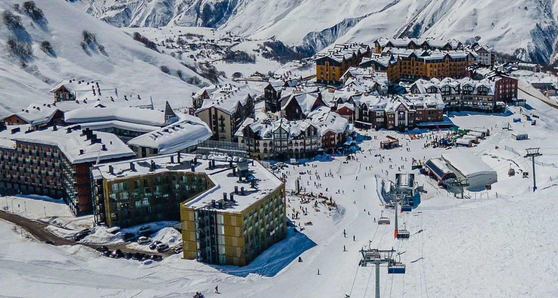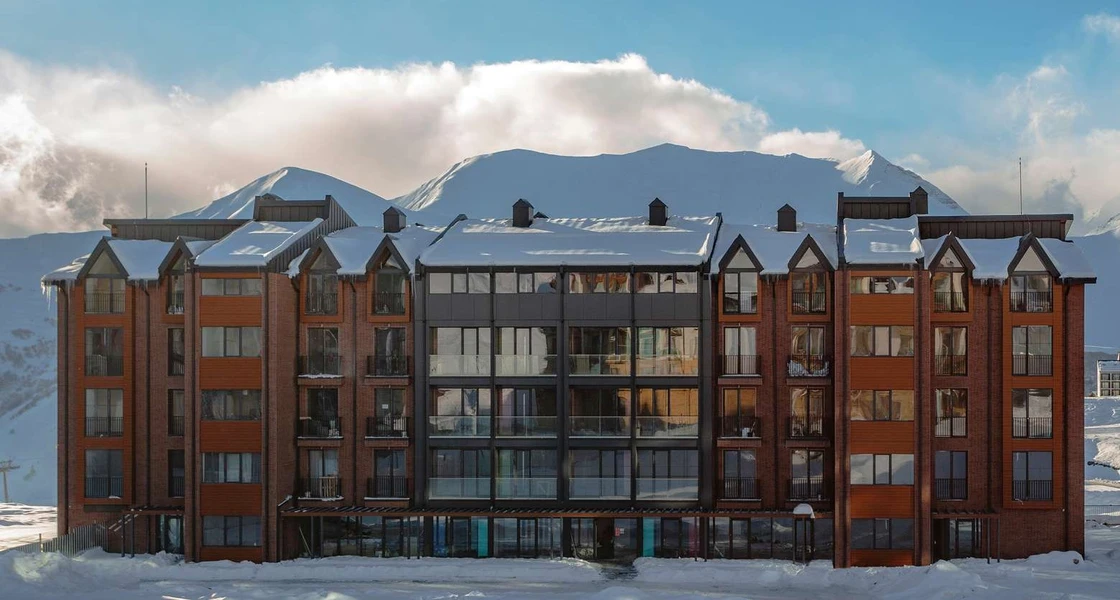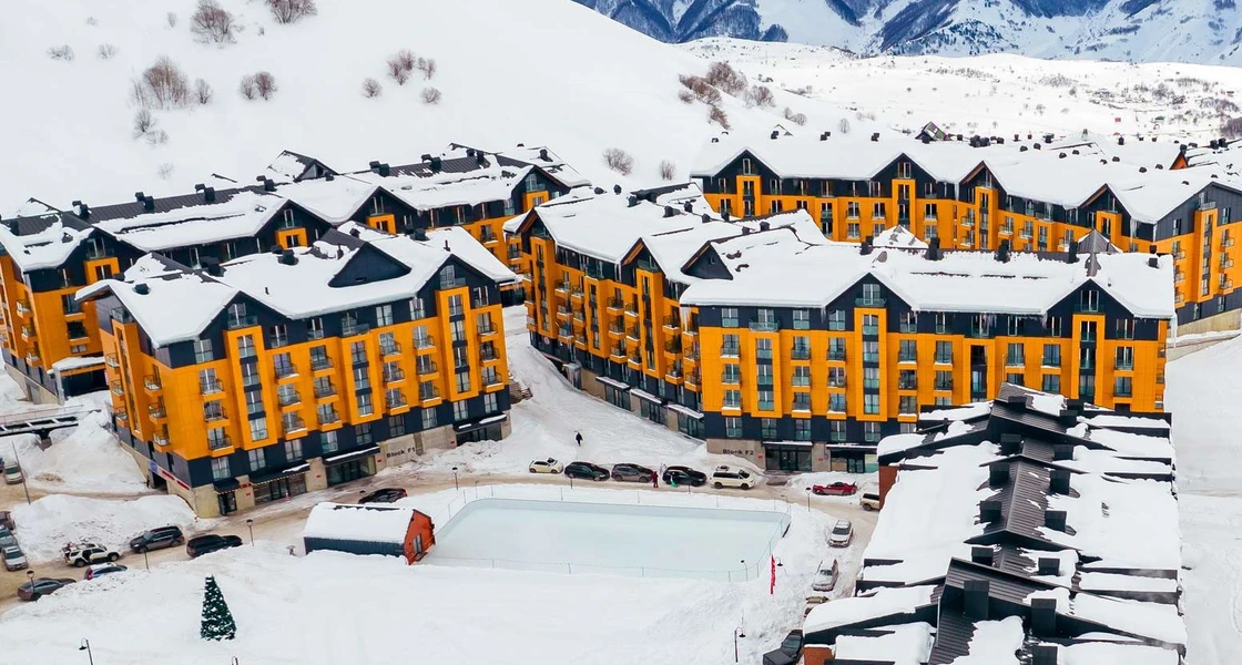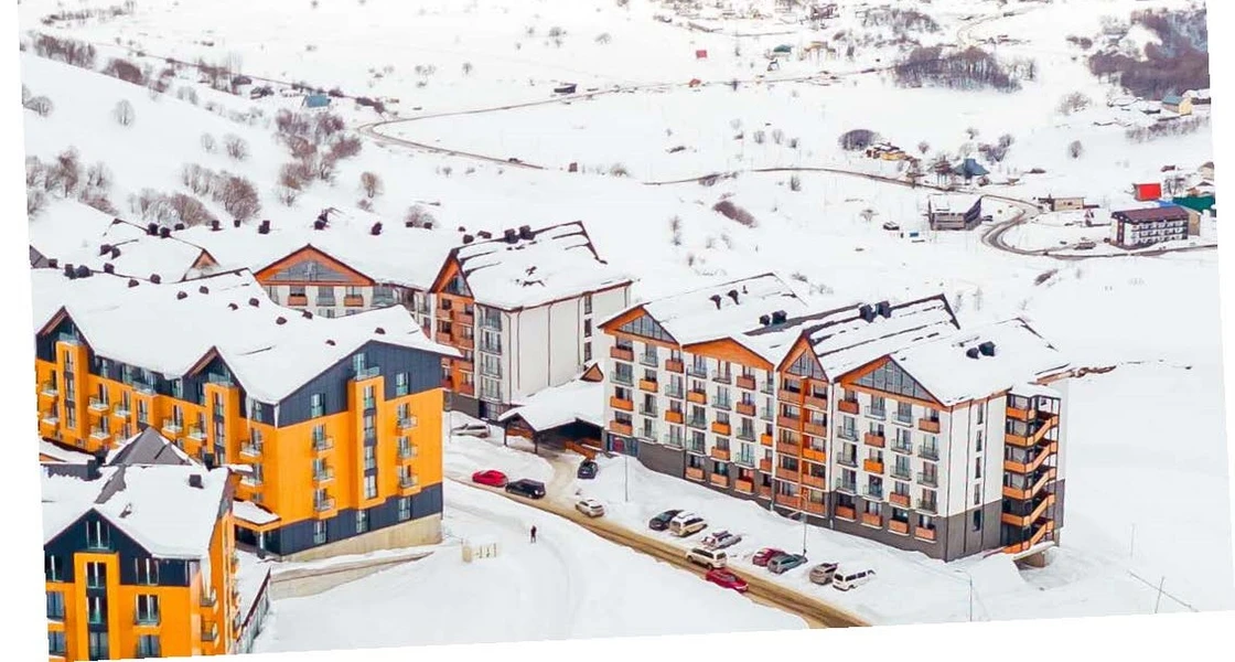 Этот проект расположен в Грузии, в заснеженном регионе Казбеги, а именно в Гудаури. Проект построен на территории площадью 100 000 квадратных метров и состоит из 8 различных зданий высотой в 5 этажей. В нем 636 тщательно спроектированных жилых квартир, предлагающих варианты от студий (1+0) до двухкомнатных квартир (1+1), площадью от 30 до 43 квадратных метров.