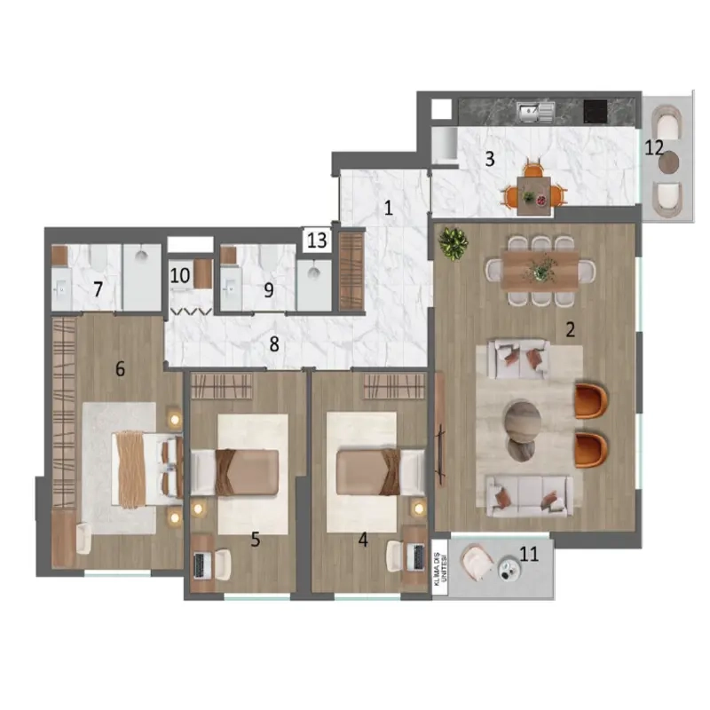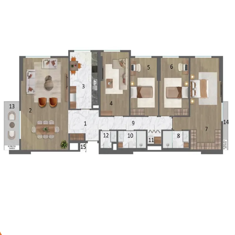 Этот жилой проект построен на участке площадью 23 500 квадратных метров и состоит из 7 зданий, или жилых блоков, каждый из которых возвышается на 13 этажей. В настоящее время предлагаются варианты квартир от 1+1 до 4+1 площадью от 68 до 204 квадратных метров. В проекте также есть коммерческие магазины, включающие 14 торговых точек, которые удовлетворят ваши потребности как жителя.