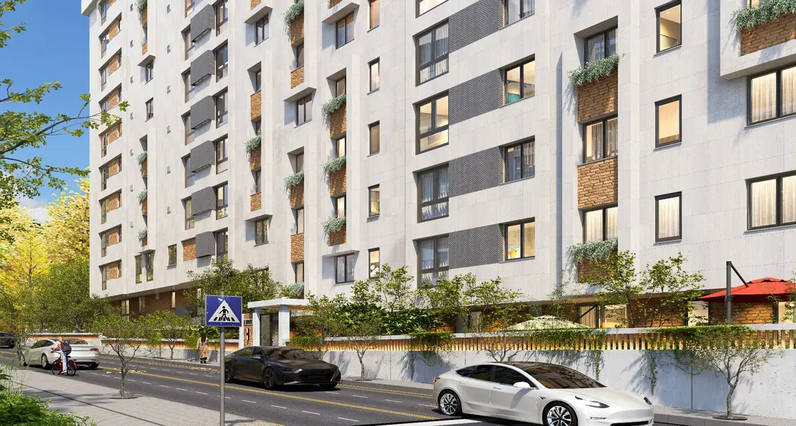Проект построен на участке площадью 1 200 квадратных метров и состоит из одного жилого здания в 11 этажей, предлагающего квартиры с вариантами 1 + 1 и 2 + 1, площадью от 46 до 85 квадратных метров.