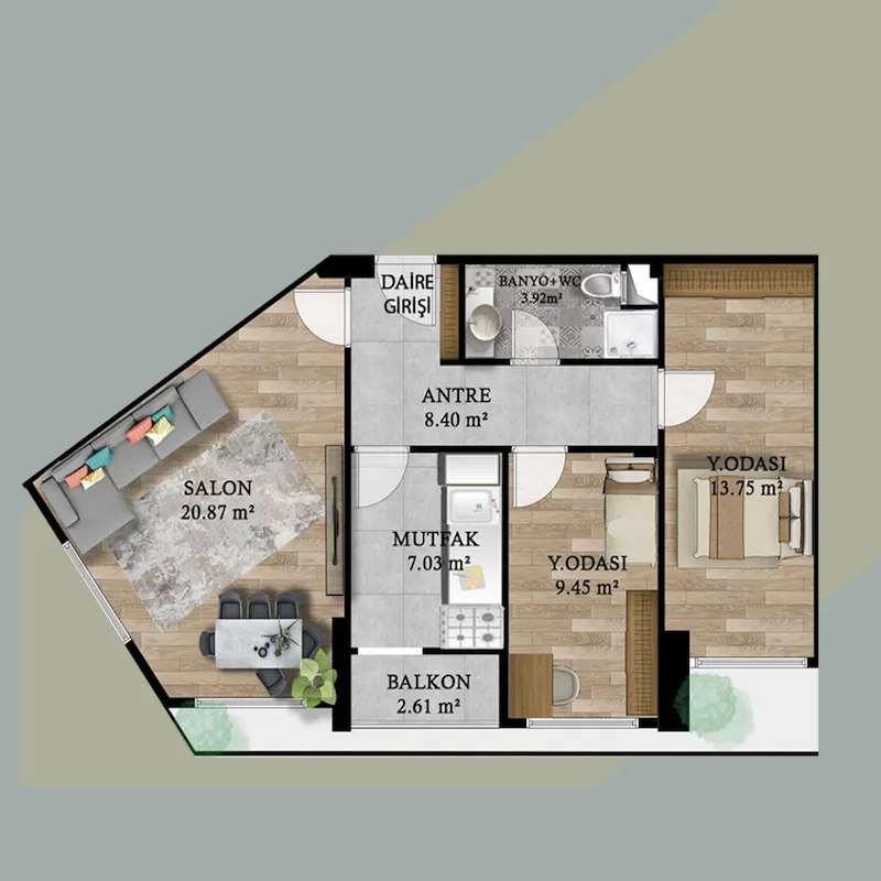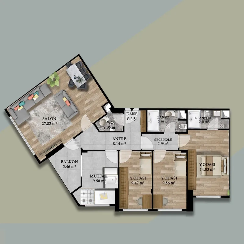 Проект был построен на участке площадью 4 000 квадратных метров и состоит из одного здания или жилого блока высотой 13 этажей. Здание с современным дизайном содержит общее количество жилых квартир, около 73 квартир на продажу в Зейтинбурну. В настоящее время предлагаются варианты квартир от 2+1 до 3+1 площадью от 94 до 164 квадратных метров.