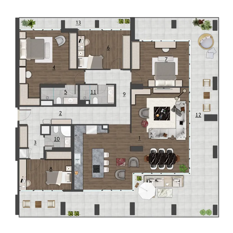Bu proje 42.000 metrekarelik bir arazi alanı üzerine inşa edilmiş olup, 13 kat yüksekliğinde 11 bina veya konut bloğundan oluşmaktadır. Proje, yatırımcılara 1 + 1'den 4 + 1'e kadar çok sayıda seçenek ve 66 ila 317 Metrekare arasında değişen alanlarla toplam 894 konutluk daire sunmaktadır.