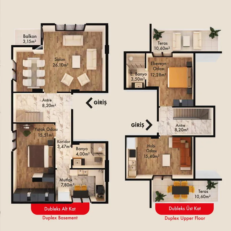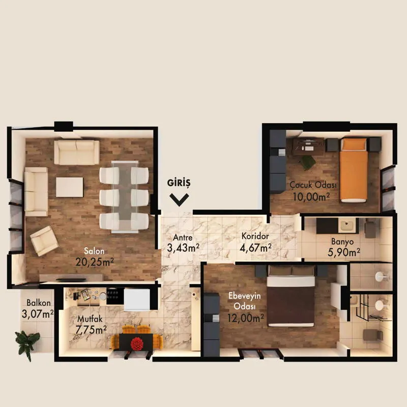 | Planlar | Odalar | Salonlar | Alan | Fiyat | Kat Planları |
