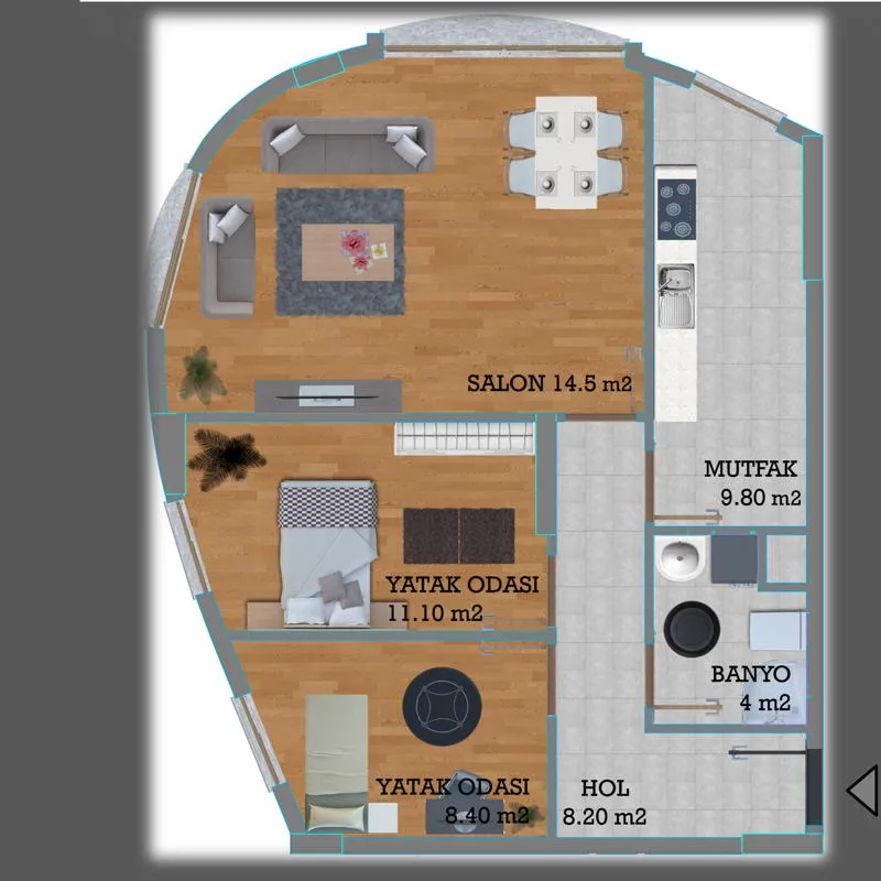 | Planlar | Odalar | Salonlar | Alan | Fiyat | Kat Planları |