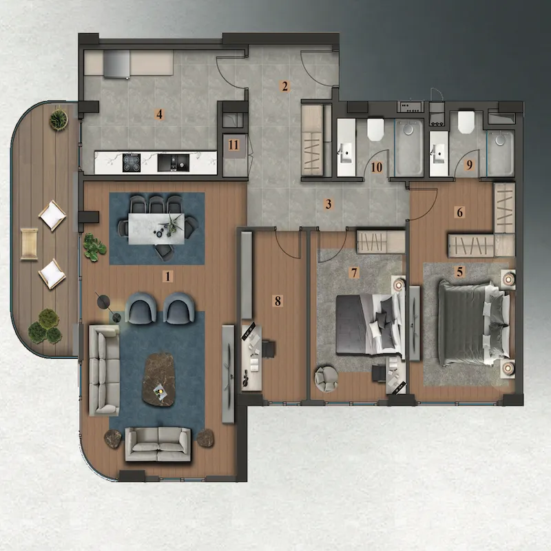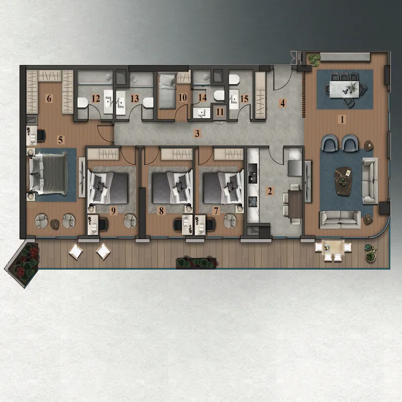 Proje 36.000 metrekare arsa alanı üzerine inşa edilmiş olup, 6 kat yüksekliğinde 9 bina veya konut bloğundan oluşmaktadır, böylece içindeki toplam daire sayısı 274 daire veya konut olup, şu anda 1 + 1'den başlayarak 5.5 +1'e kadar daire seçenekleri bulunmaktadır. 80 ila 438 metrekare arasında değişen alanlara sahip, birden fazla dubleks daire seçeneği ve özel açık bahçeli ve geniş balkonlu daireler bulunmaktadır ve tüm daireler Belgrad Ormanı'nın muhteşem manzarasına sahiptir.