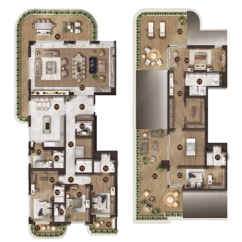 Projenin yakınında, kesinlikle ihtiyacınız olan yeşil ortamı da sağlayan bir meyve bahçesi var ... Projede barınma ve dinlenme ihtiyaçlarına adanmış alanlar mevcut olup meditasyon ve yogaya adanmış bir alan da bunlardan biridir. Egzersizlerinizi yaparken zihninizi de özgür bırakma fırsatı bulacaksınız. Proje, her biri özel niteliklere sahip sosyal tesisler için 1.200 metrekarelik bir alan içeriyor. Erkekler/kadınlar için ayrı tesisler bulunmaktadır;