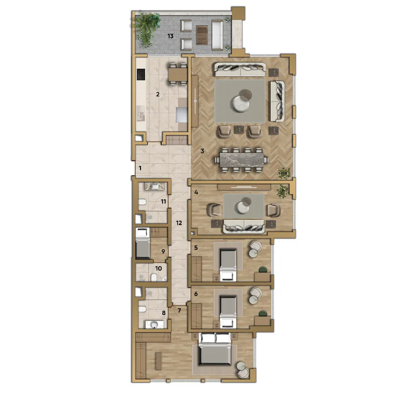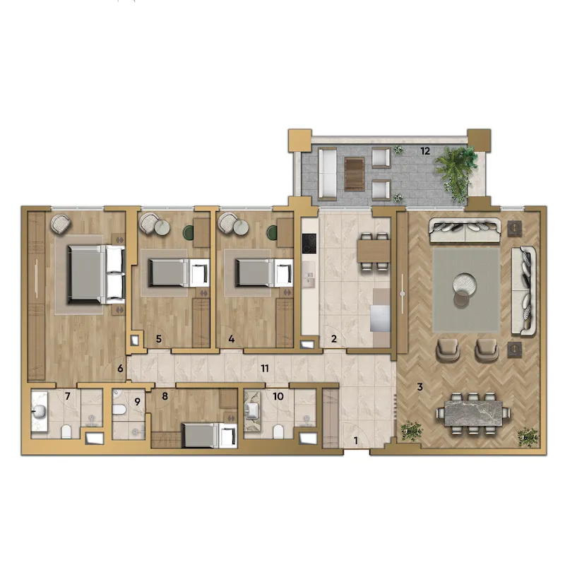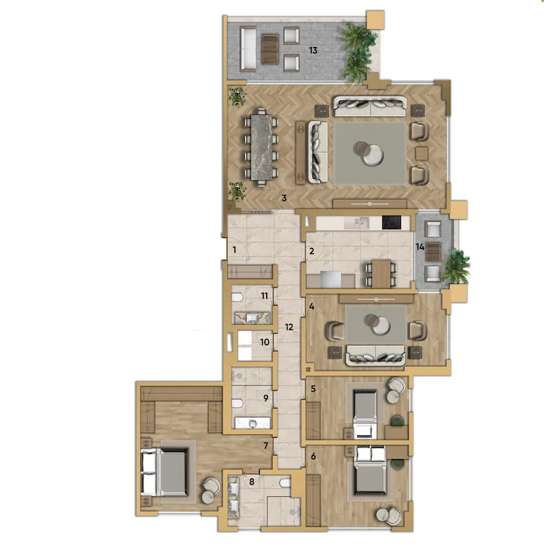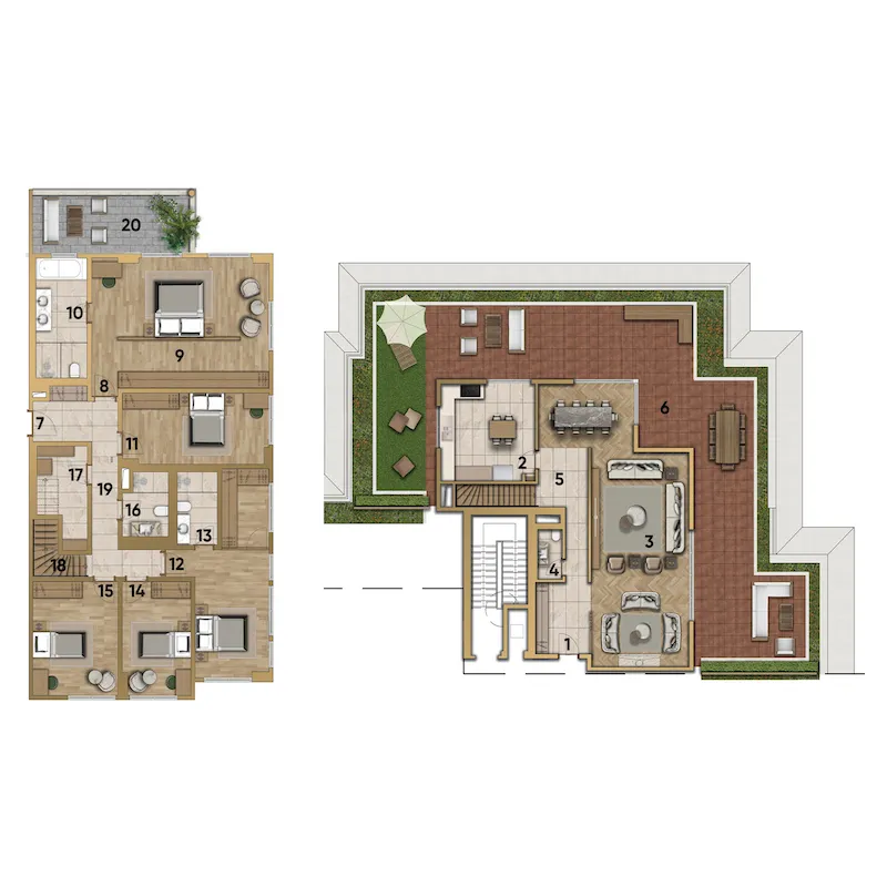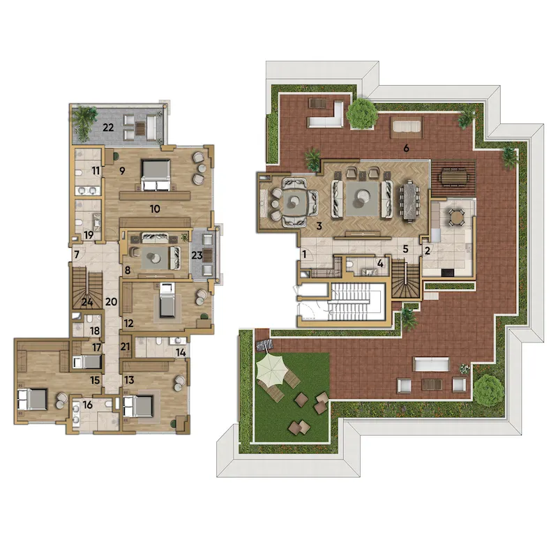 Proje, yeşil alanlar dahil 6.300 metrekare tahsis edilerek toplam 10.500 metrekare alana sahip bir arazi üzerine inşa edilmiştir. Bu proje, 6 kat yüksekliğinde 3 bloktan oluşmaktadır, böylece içindeki toplam konut sayısı, 2 yatak odasından balkonlu veya teraslı 5 yatak odasına kadar 67 konut birimidir. Hatta bahçeler, içinde bulunan konut birimi seçenekleri 3 + 1'den 5.5 + 1'e kadar, 196 ila 689 metrekareden başlayan alanlarla ve tüm konut birimleri Belgrad ormanlarının muhteşem manzarasına sahiptir.