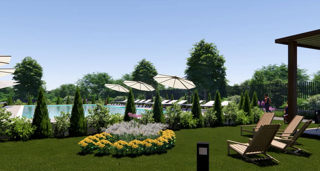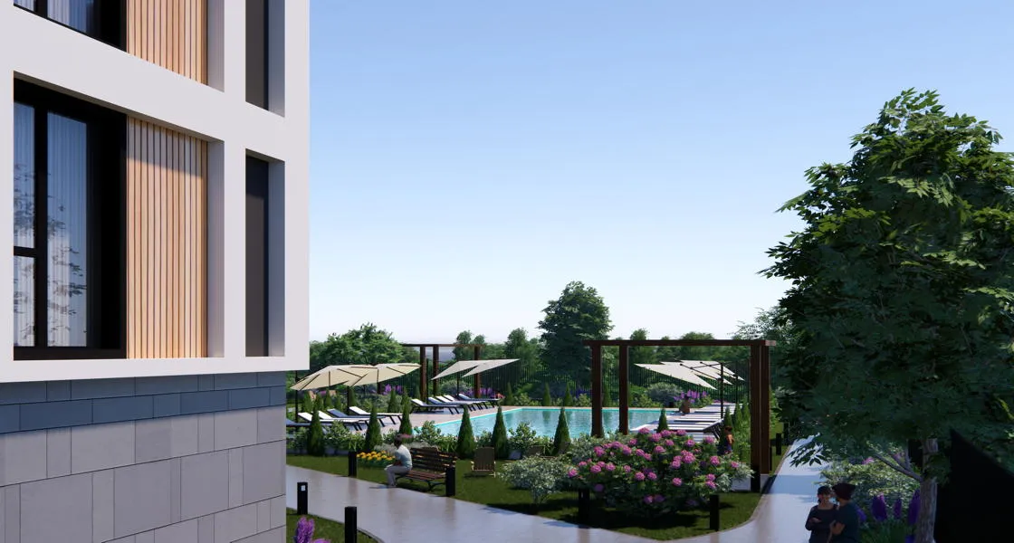 Bir spor salonu - açık yüzme havuzu - sauna - buhar odası - Türk hamamı - çocuk bahçesi - oturma bankları - koruma - resepsiyon - otopark - doğanın güzelliğinin tadını çıkarmak için 2800 metrekarelik yeşil alanlarla.