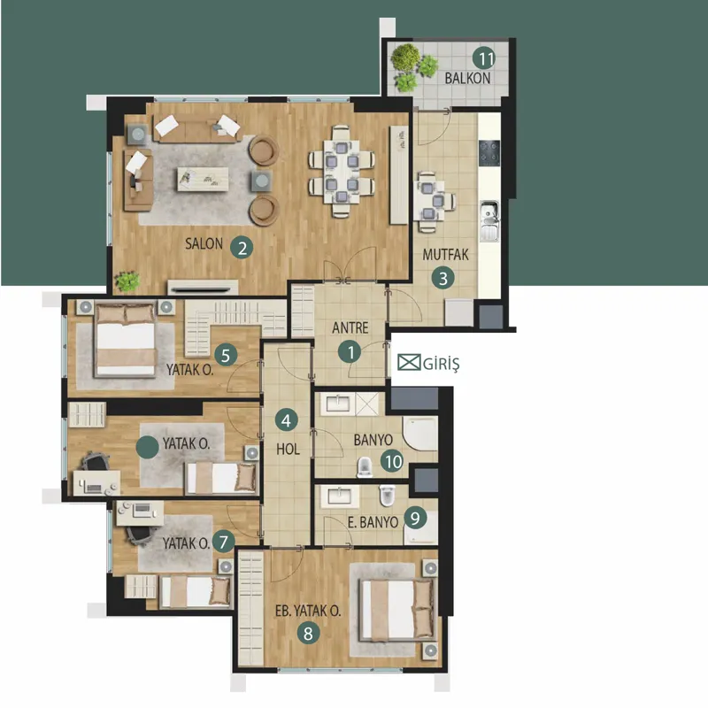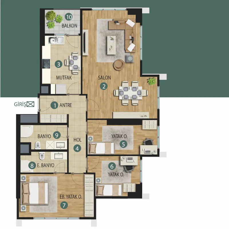 Açık ve kapalı otoparka sahip olan proje, park sorununu ortadan kaldırıyor ve çocuklar için güvenli alanlar sağlıyor. Proje, güvenlik ekipleri ve kameralar sayesinde huzur içinde yaşayabileceğiniz yaşam alanları sağlıyor.